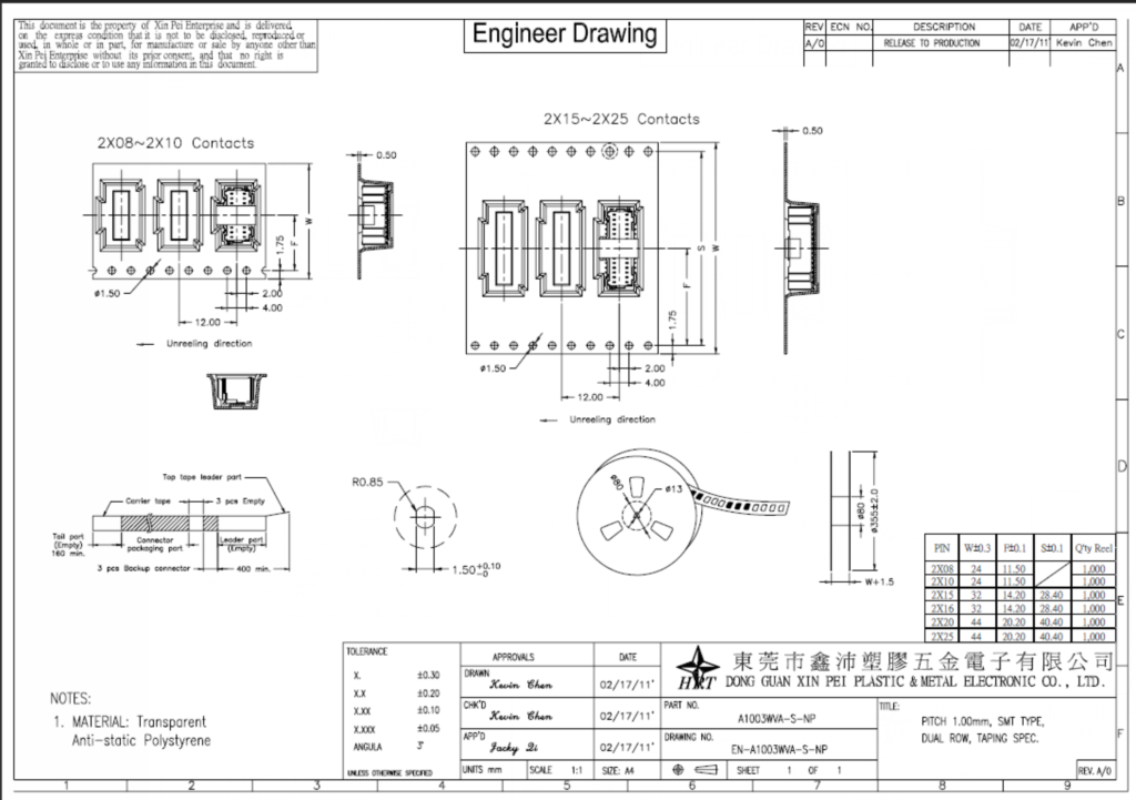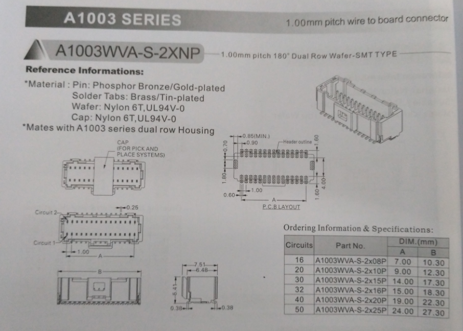 | Wafer | Dual rows type | A1003WV-S-2XNP & A1003WVA-S-2XNP |